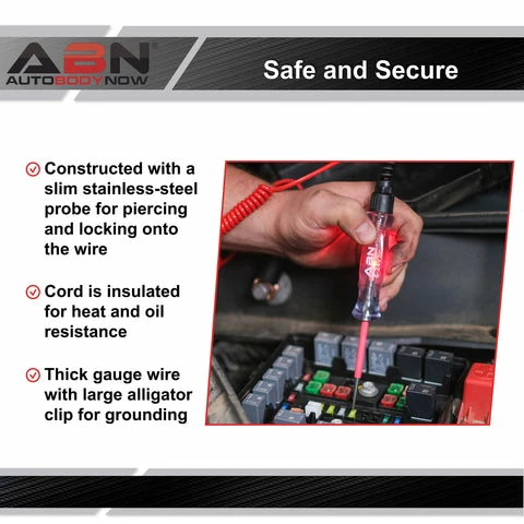 - [Test Wiring with Ease]: Identify wiring issues such as short circuits, fuses, test connections, wiring harnesses, and more with the ABN Wire Piercing Circuit Tester